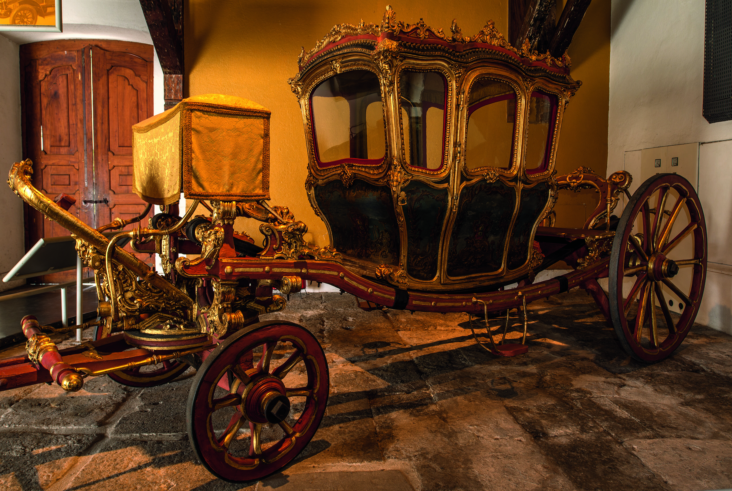 Ela reúne 27 peças, entre cadeirinhas de arruar, berlindas, traquitanas e um automóvel do início do século XX, o Protos, que pertenceu ao Barão do Rio Branco.