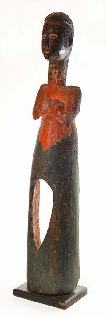 Como ‘uma máscara de madeira pintada, representando uma preta de busto nu, que os