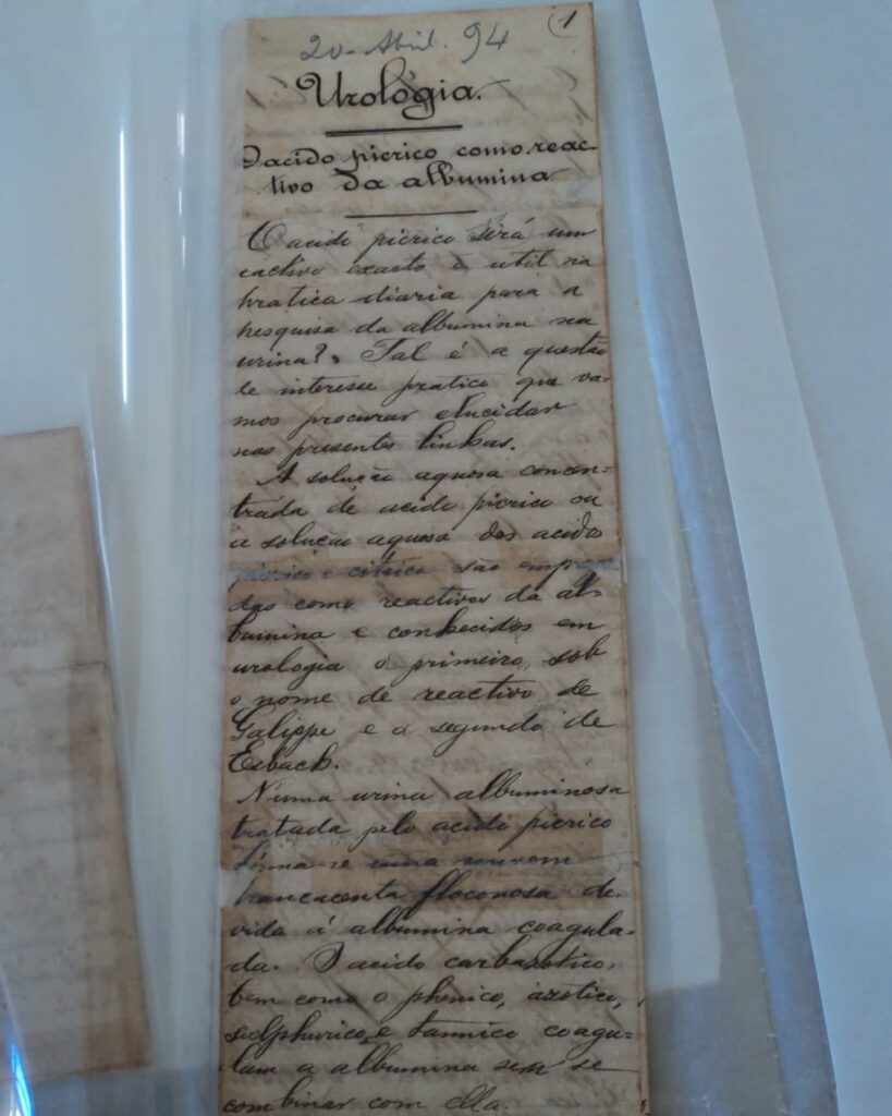 A coleção Oswaldo Cruz reúne itens de 1890 a 1902, como um caderno de anotações com estudos sobre fisiologia, o trabalho intitulado “Urologia: o ácido pícrico como reativo da albumina”, escrito em 20 de abril de 1894 e publicado no periódico Brasil-Médico, além de um ex-libris de Oswaldo Cruz com a inscrição “Fé Eterna na Ciência”.