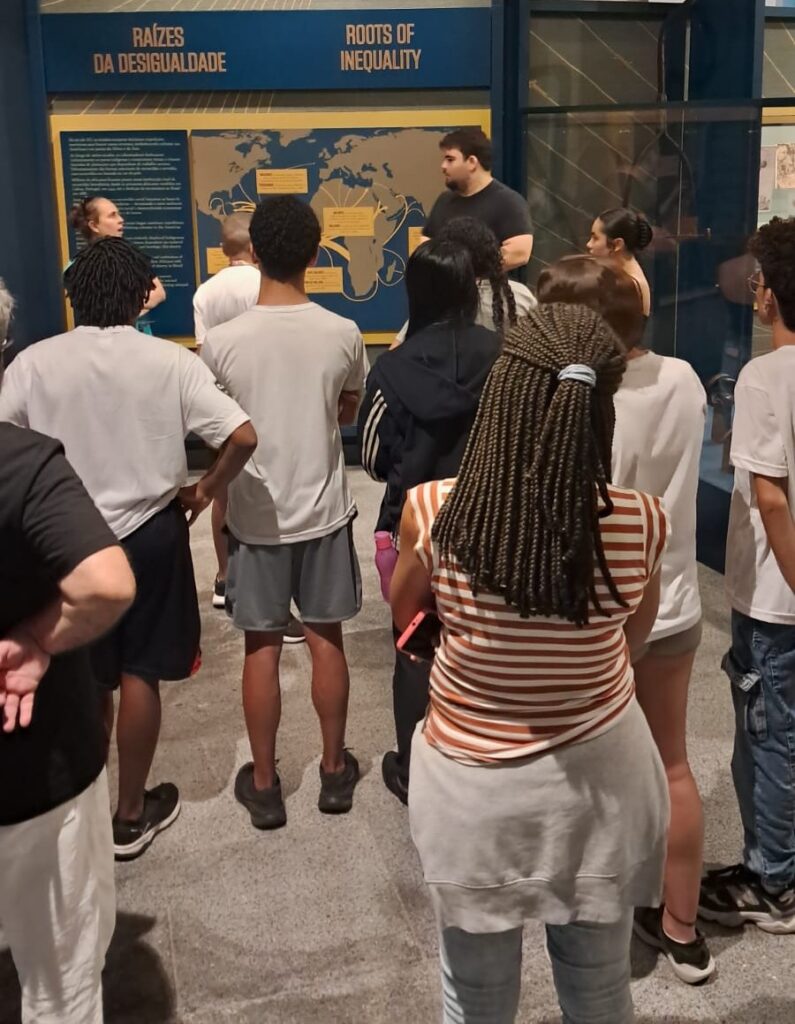 Desde que foi inaugurada no mês de novembro, a exposição “Para além da escravidão: construindo a liberdade negra no mundo” tem recebido muitos visitantes que levam consigo diversas experiências e questionamentos para as suas vidas. A visita a um museu é um ato que agrega valor para cada indivíduo e as atividades realizadas pelo Núcleo de Educação (Nueduc) contribuem para potencializar esses aprendizados. Para isso, foram levados em consideração fatores como mediação qualificada, formação prévia do público, planejamento logístico e alinhamento com a curadoria transnacional.