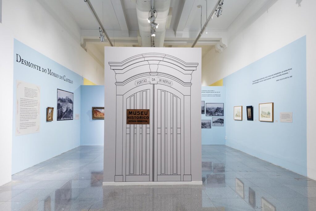 A exposição se organizou em quatro módulos: “Desmonte do morro do Castelo”; “Efervescência carioca”; “Exposição Internacional Comemorativa do Centenário da Independência”; e “Criação do Museu Histórico Nacional”.