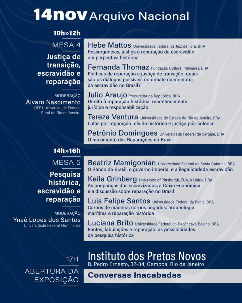 Nos dias 13 e 14 de novembro de 2025, o Arquivo Nacional sediará o seminário internacional “Para Além da Escravidão – Memória, Justiça e Reparação”. O evento busca refletir sobre as formas de representação e de memória da escravidão, assim como sobre o papel das instituições culturais e de pesquisa na construção de políticas públicas voltadas à reparação e à justiça racial.